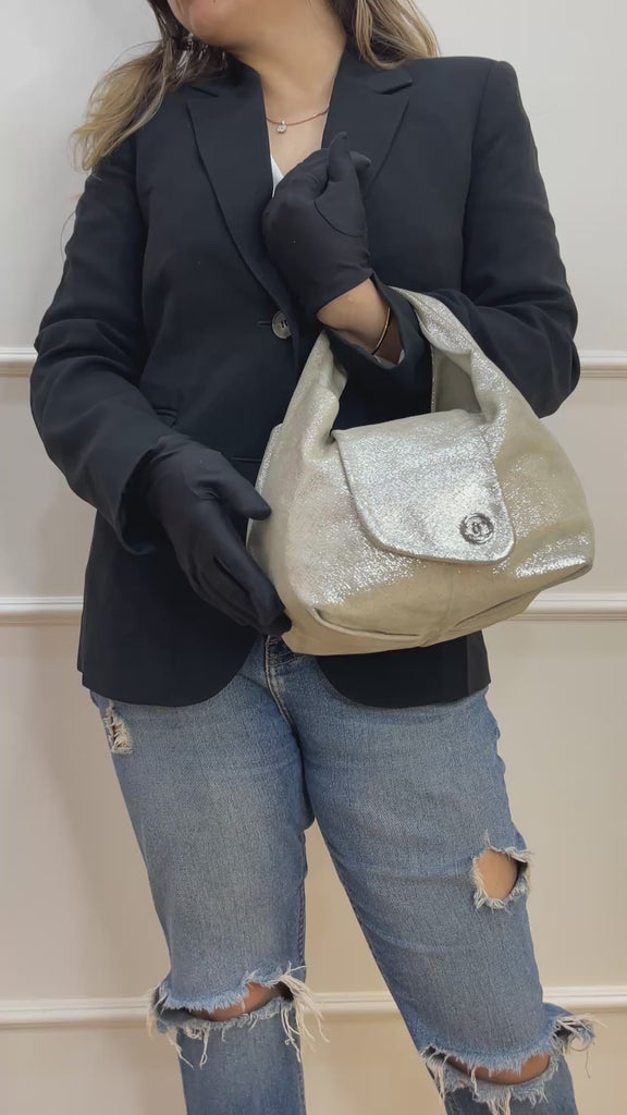 Chanel Silver Metallic Calf Leather Hobo Handbag
