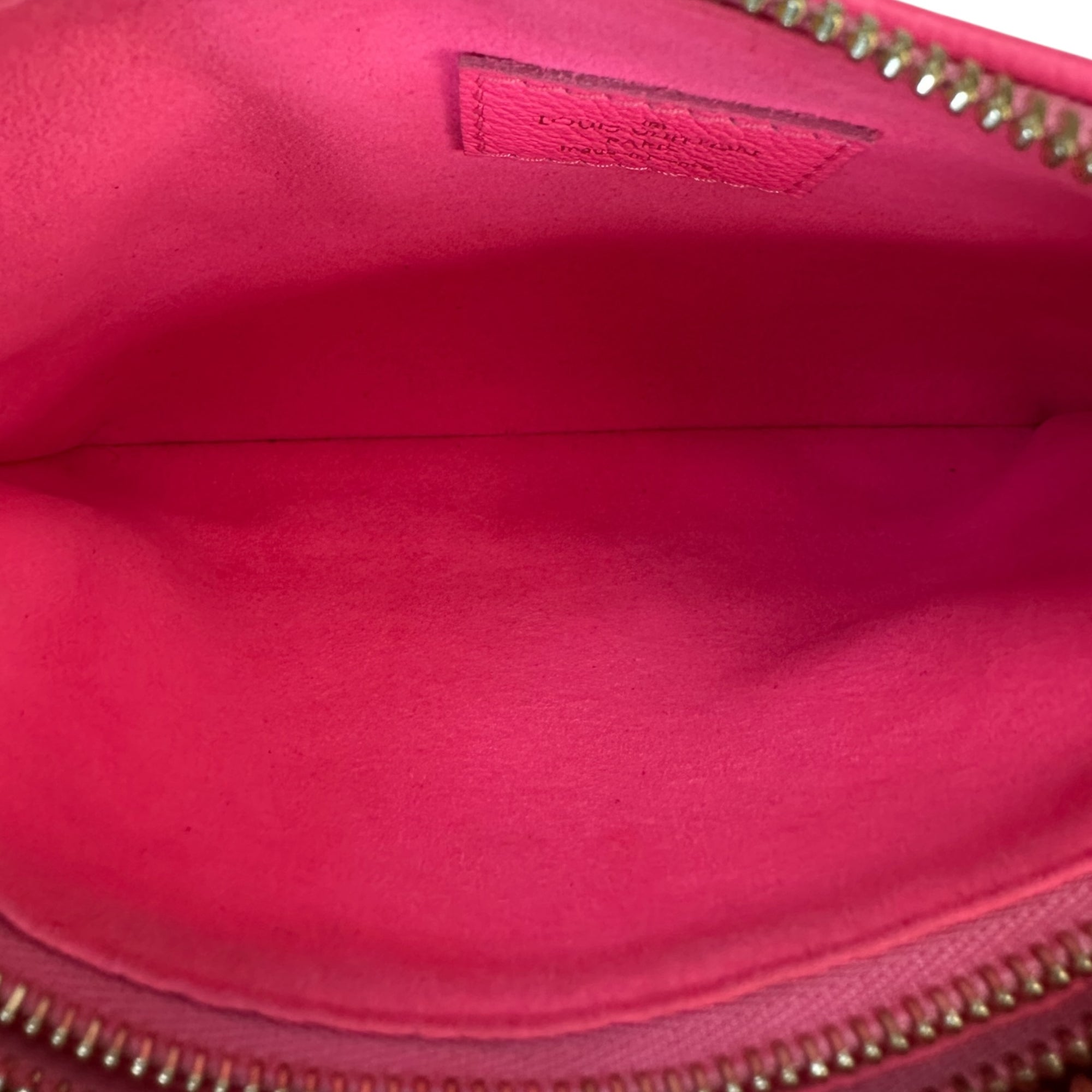 In excellent overall condition, showing only minimal signs of wear including faint scratches on the metal, slight marks on the lining and handle, and a barely noticeable scuff on the exterior.